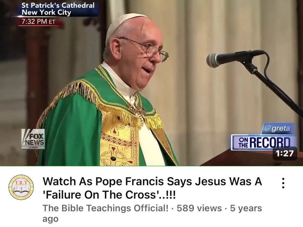 The Cross of Jesus Christ was predetermined by God for the benefit of His elect. Acts 2:23-24 4: 28 Without the Cross of Christ, no flesh would be justified. The Pope Francis quote is anti Gospel and anti-Christ.